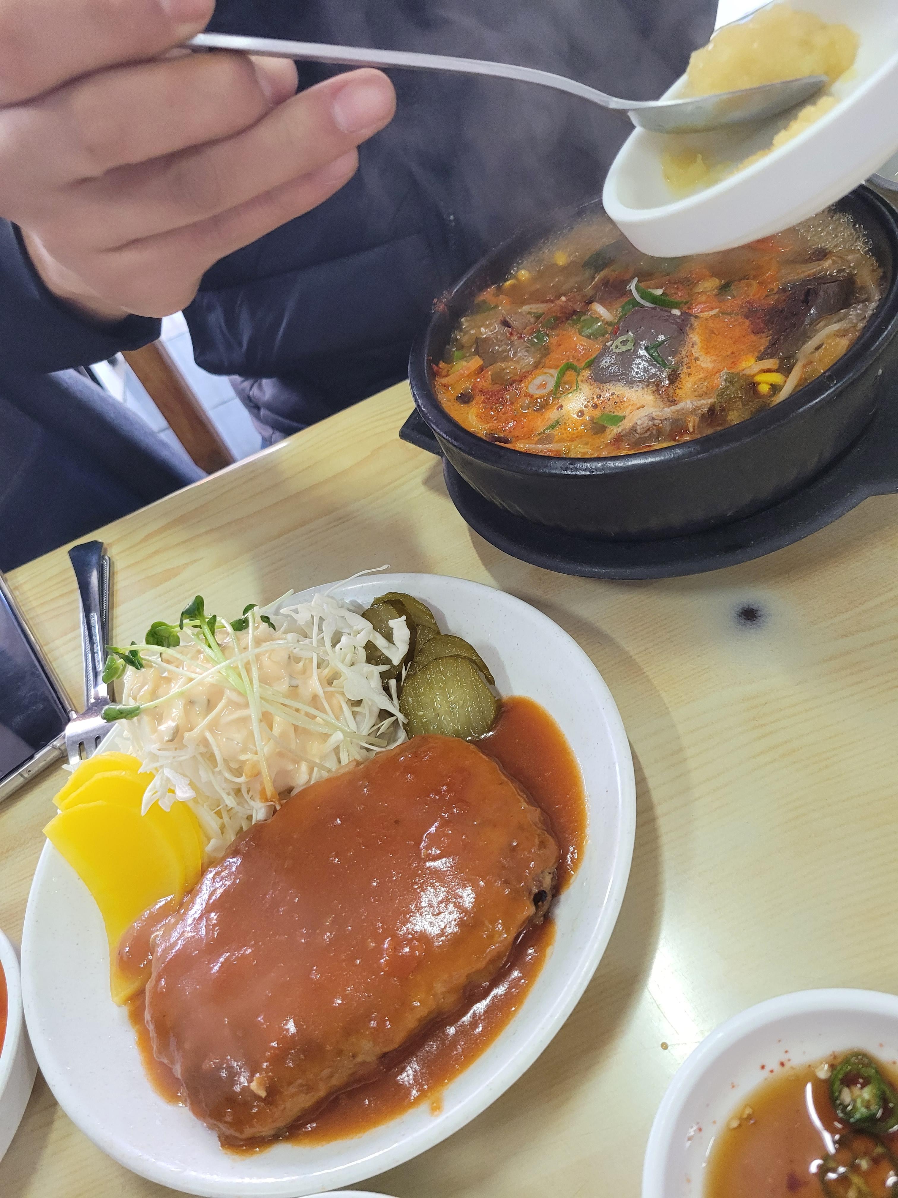 순간 눈을 의심했다. 해장국집에 함박스테이크라니?